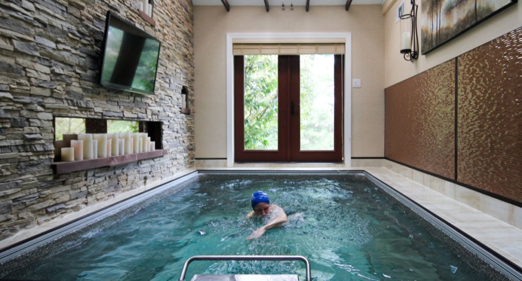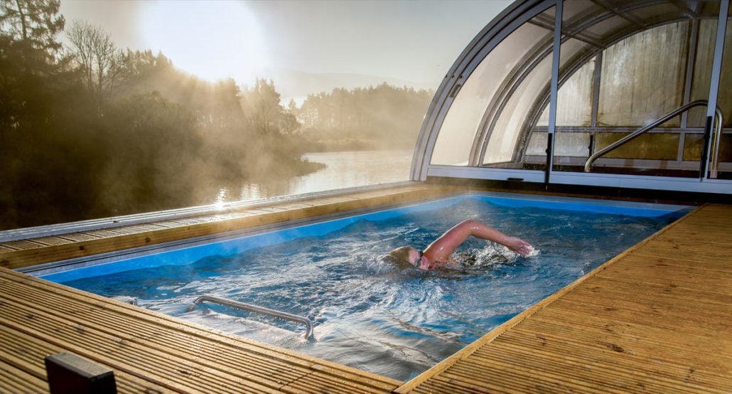 Returkanalerna längs poolens långsidor levererar tillbaks vattnet till simaggregatet. Allt för att skapa ett så turbulens fritt vatten som möjligt.